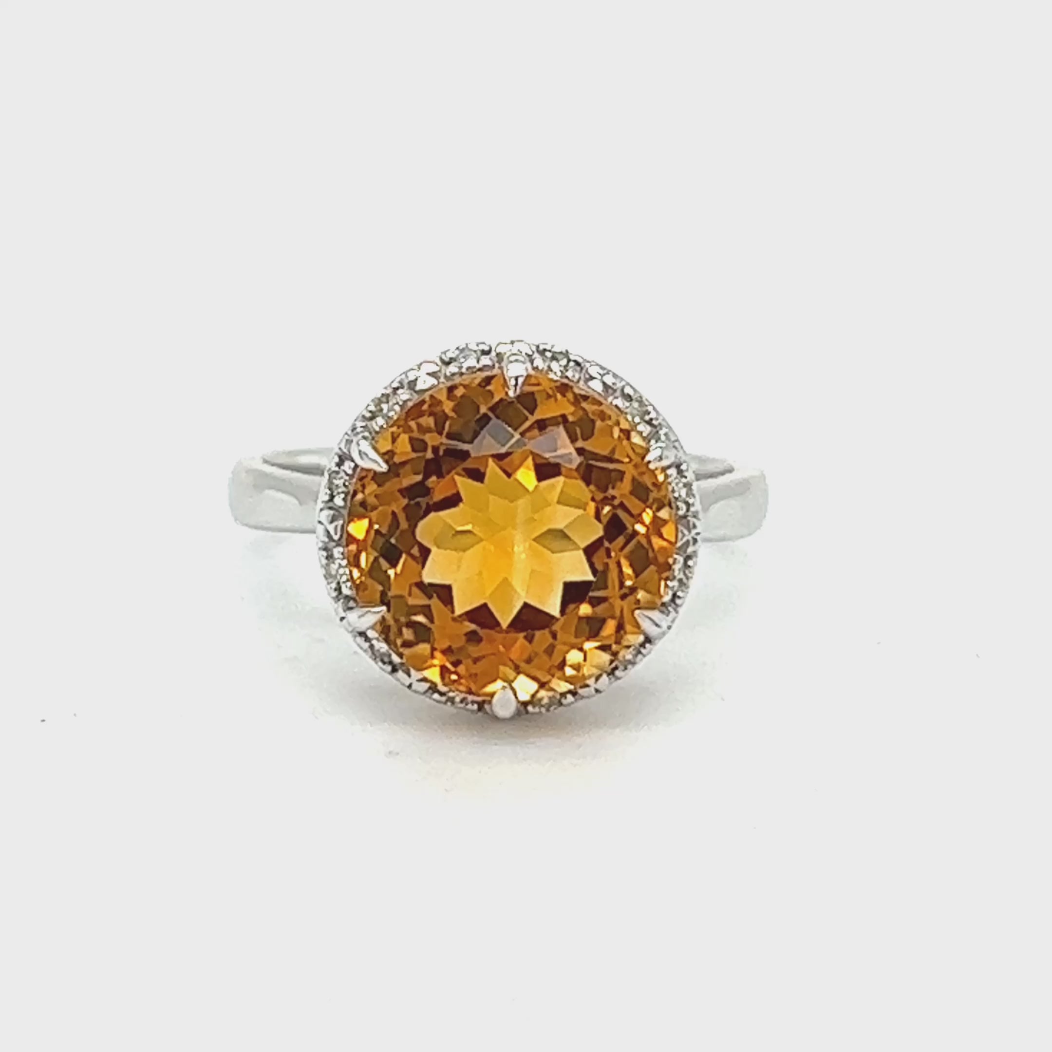 9ct White Gold Round Citrine & Diamond Ring