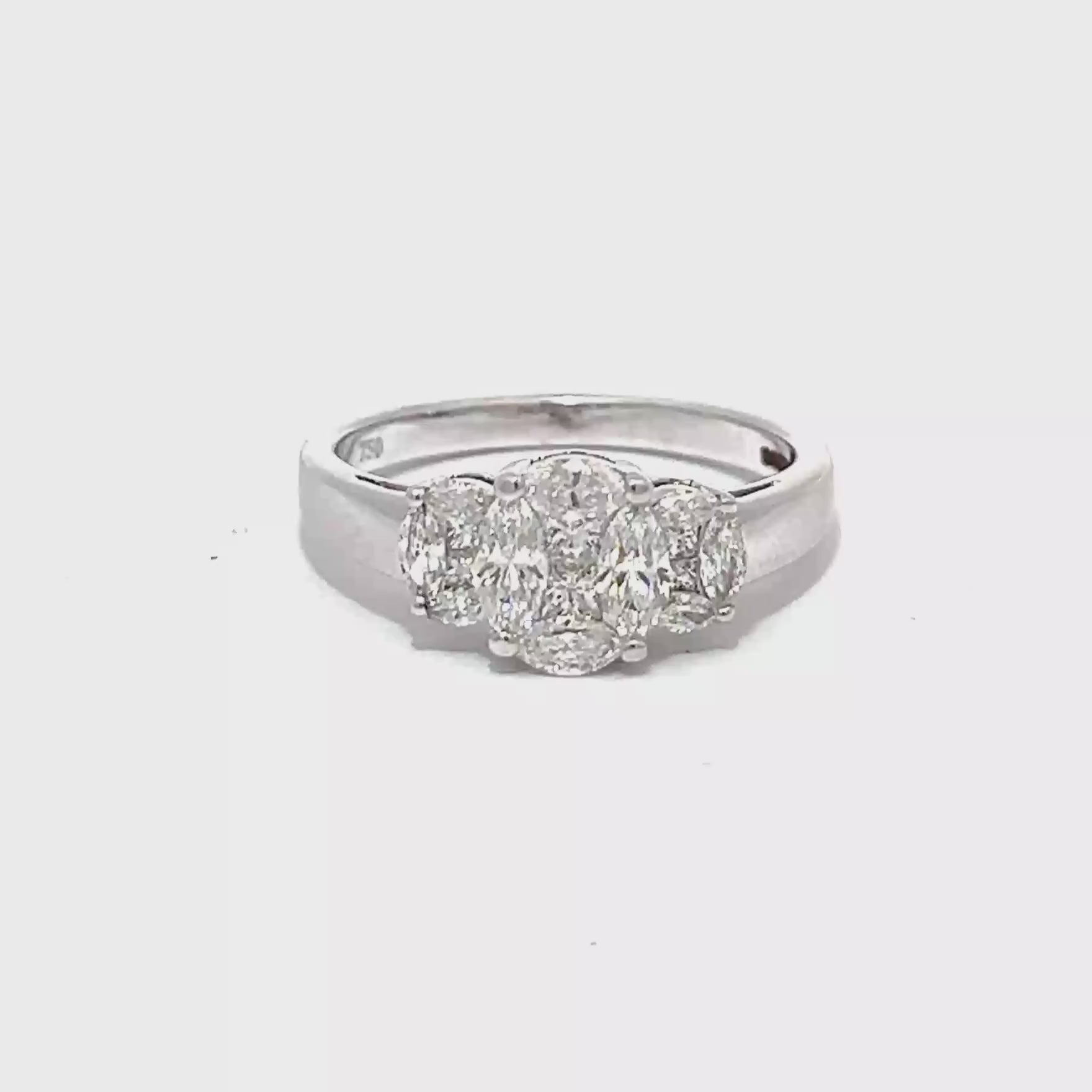 Diamond Trilogy Cluster Ring 18ct White Gold