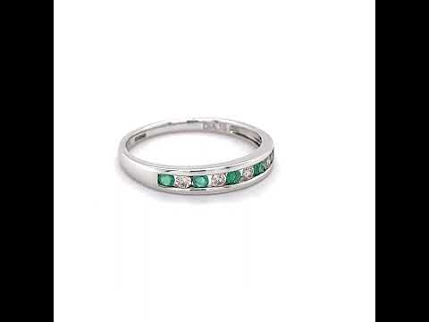 Emerald & Diamond 9 Stone Channel Set Eternity Ring 9ct White Gold