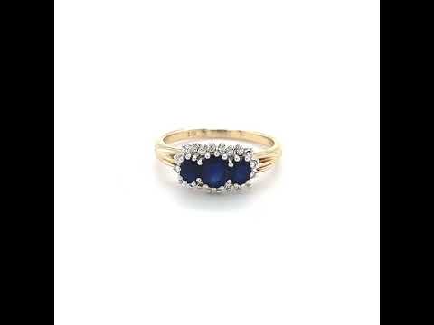 Sapphire & Diamond 3 Stone Cluster Ring 9ct Gold