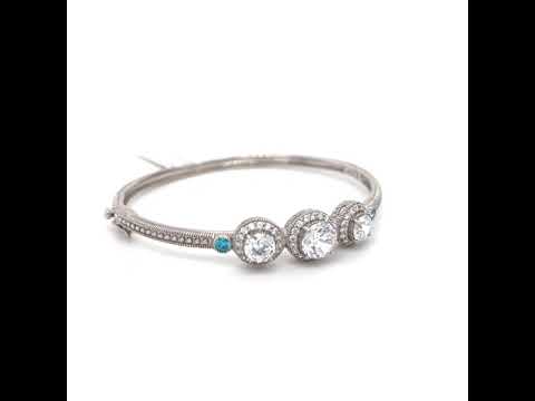 Sterling Silver Trilogy Halo Cubic Zirconia Bangle
