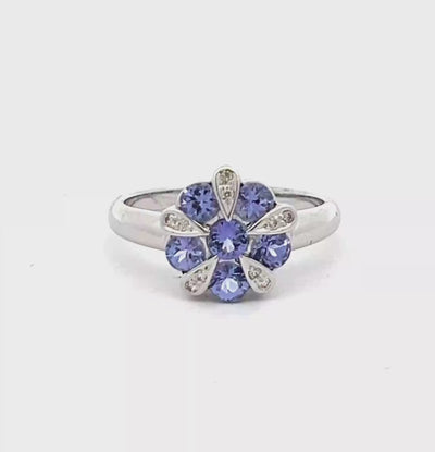 Tanzanite & Diamond Flower Cluster Ring 9ct White Gold